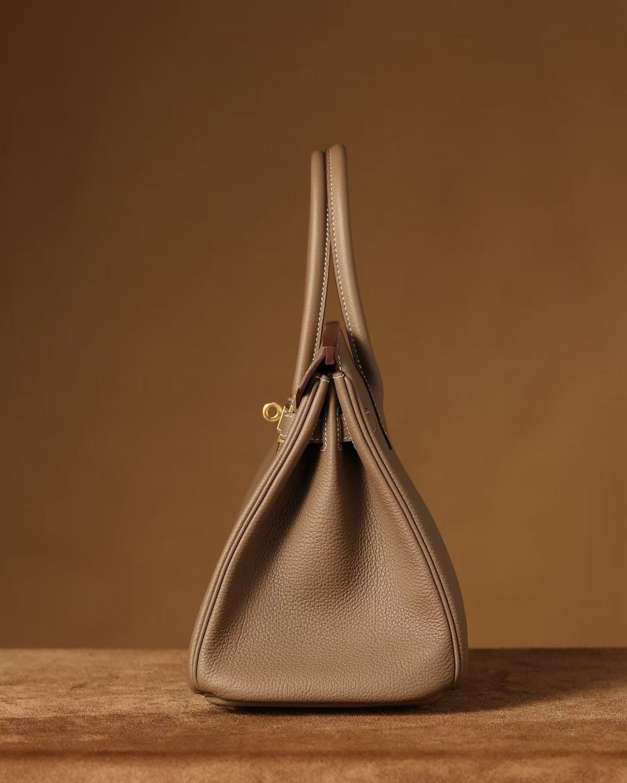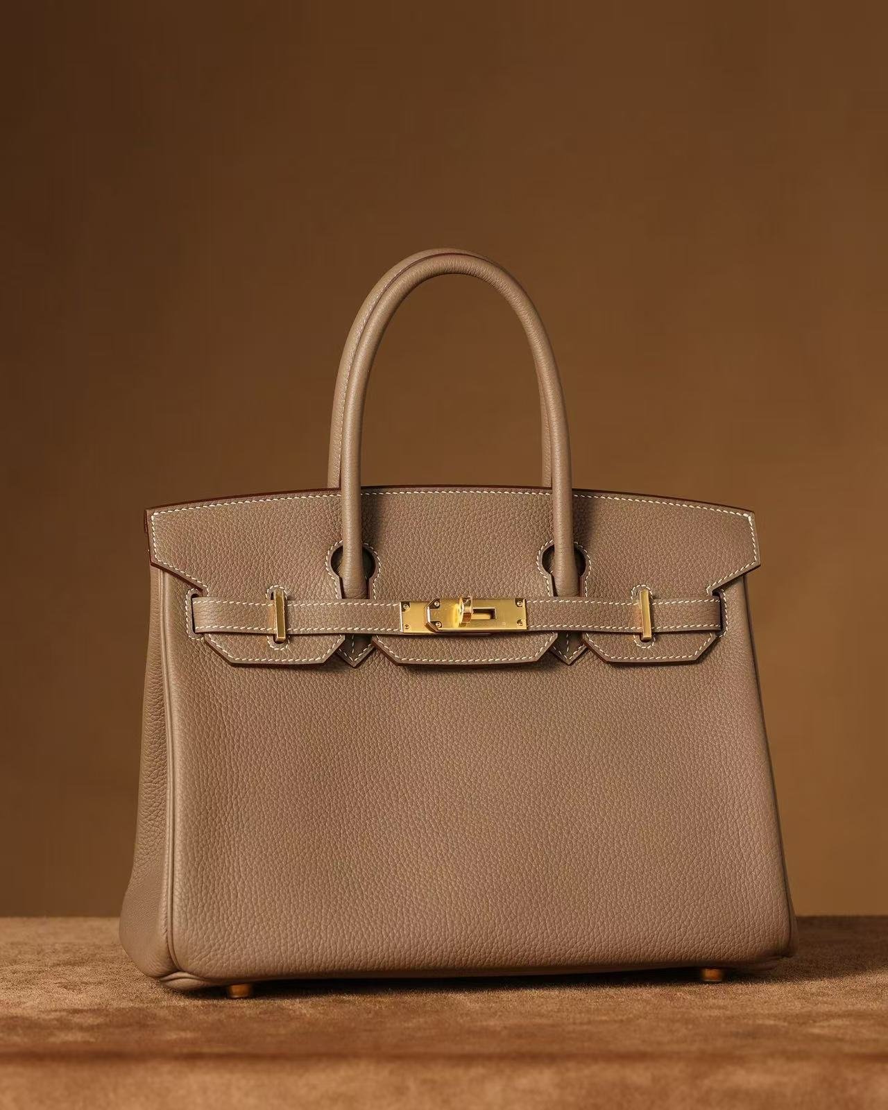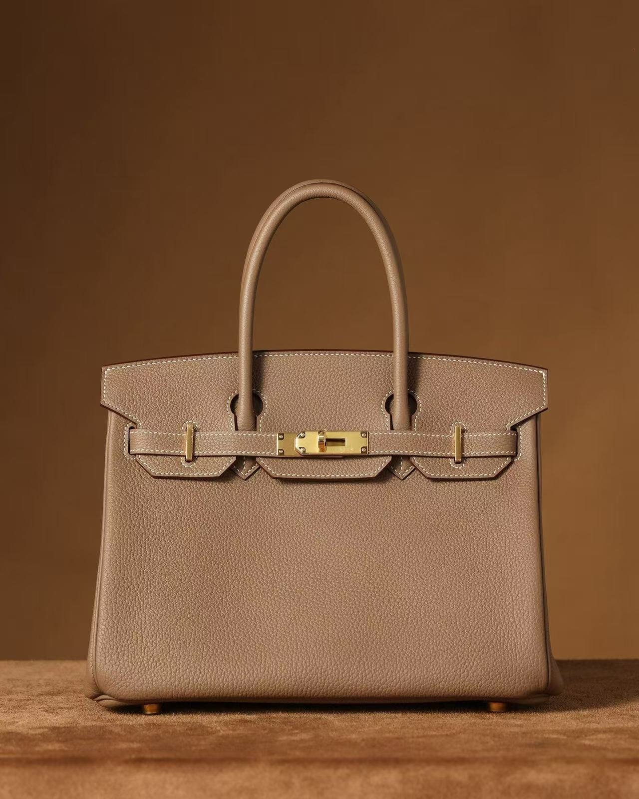 Togo leather: The most classic leather used for Birkin bags. The surface has a uniform granular texture, similar to lychee grain, and is glossy. The leather is relatively firm, easily maintaining the bag’s shape, relatively lightweight, soft to the touch, and durable;