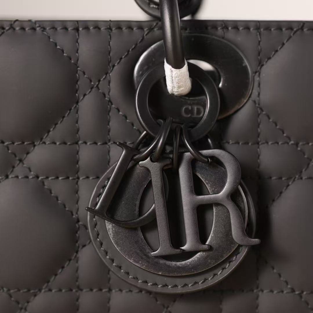 The tone-on-tone metal D.I.O.R. charms exude elegance.